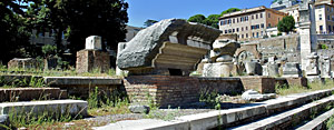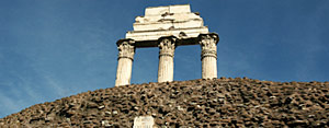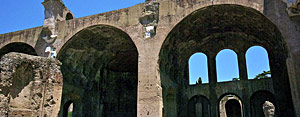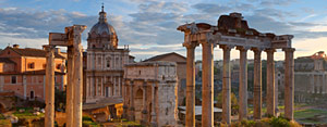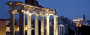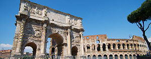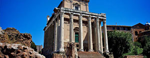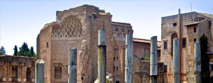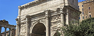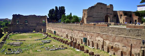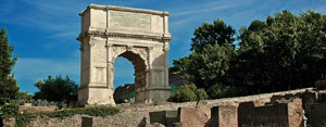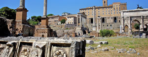 The most incredible panoramic view of the Forum can be seen from the terraces of Campidoglio, featuring the ruins of Basilica Emilia and the Curia, the Senate's seat. The pathway leads through unique sites like the Basilica di Massenzio, ending near the Arch of Titus, with a view of the unmistakable Colosseum.