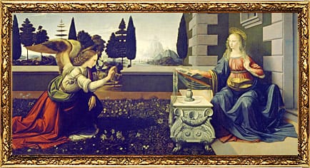 In this masterpiece a sacred moment is captured as an angel delivers divine news to Mary. Leonardo da Vinci's meticulous attention to detail and ethereal lighting showcase his artistic brilliance.