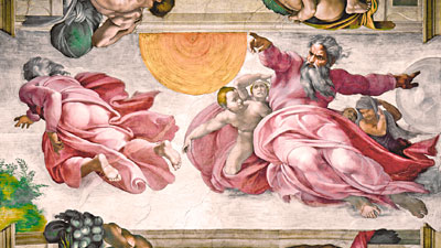 Man mano che crea, la sua immagine si fa sempre più piccola. Anche questo non è un caso: Michelangelo si è rifatto a una teoria rabbinica secondo la quale prima che esistesse l’Universo, Dio riempiva tutto. Con la Creazione, Dio pian piano si ritrae per lasciare spazio al Creato, proprio come nella Volta.