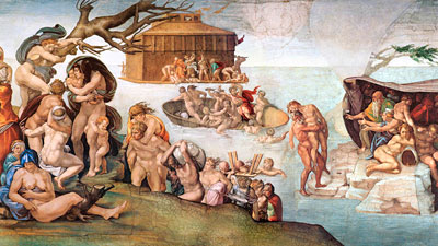 Nelle scene seguenti l’umanità ha ricoperto ormai gran parte della terra e Michelangelo prosegue il racconto insistendo sul destino tragico dell’uomo.